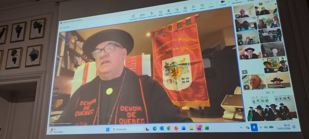 Le 21 janvier 2026, notre 2ème visioconférence s’est déroulée dans les locaux de l’institut Vermorel à Villefranche-sur-Saône et a impliqué un grand nombre de nos Devoirs Extérieurs. Une opportunité de discuter de nos activités respectives et de déguster un verre de Beaujolais en ligne !!