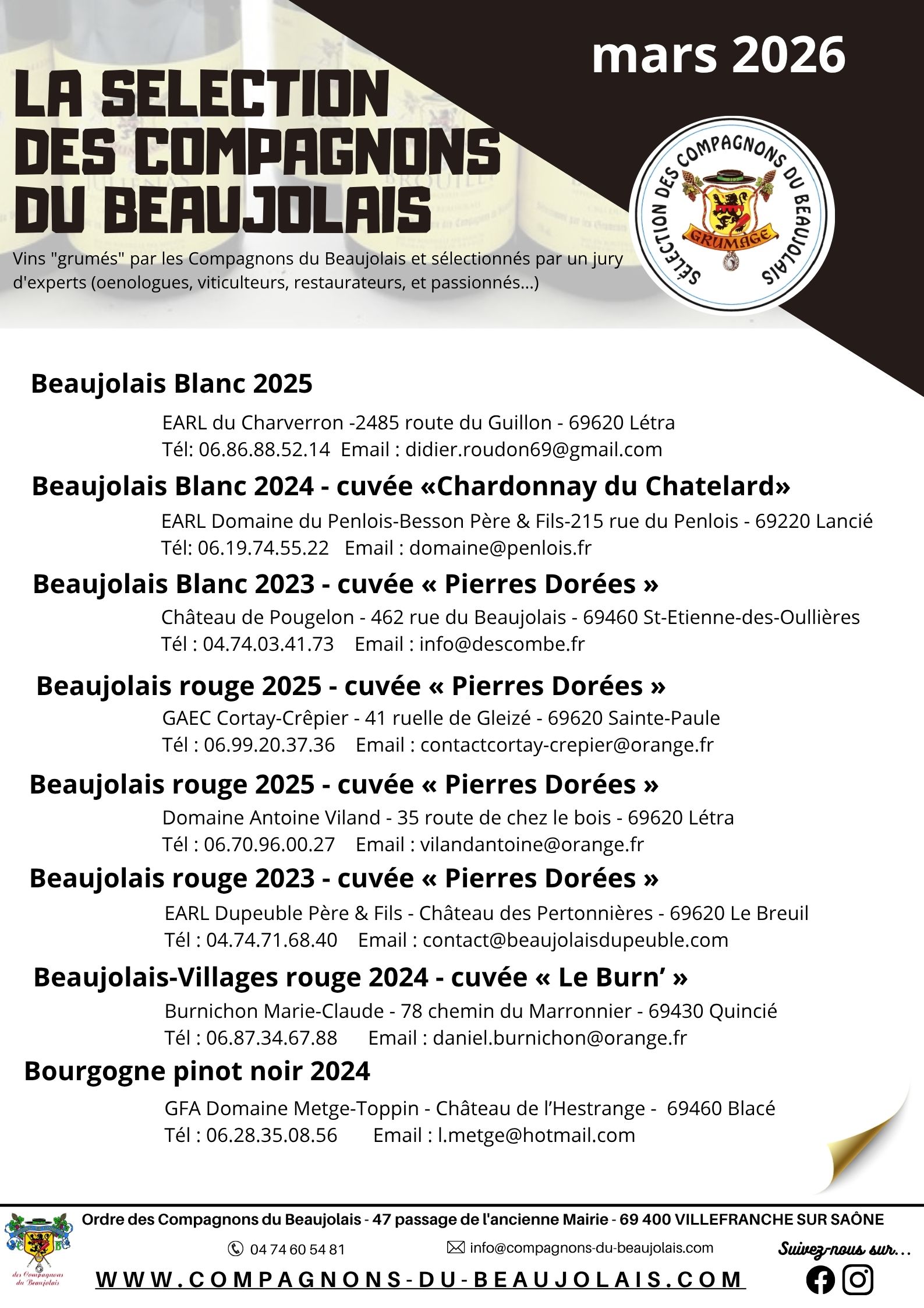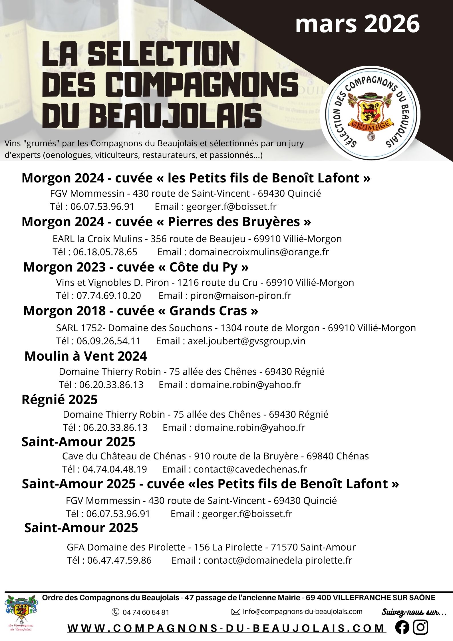 Prochaines sélections Grumage 2026 :
